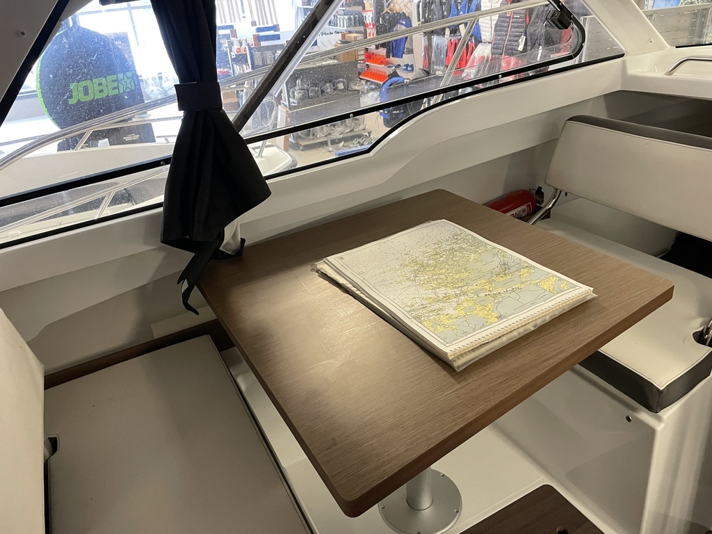 Tässä veneessä on perheen ihan kiva viettää lomaa veneillen, liukuovi myös mahdollistaa alku- ja loppusesongin ns koppiveneilyn kun lämmittimellä saa kajuutan lämpimäksi.