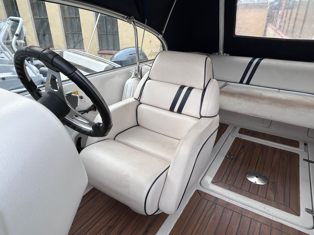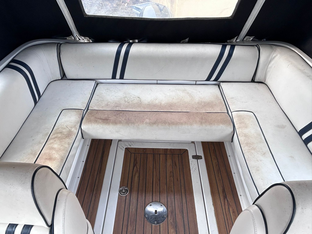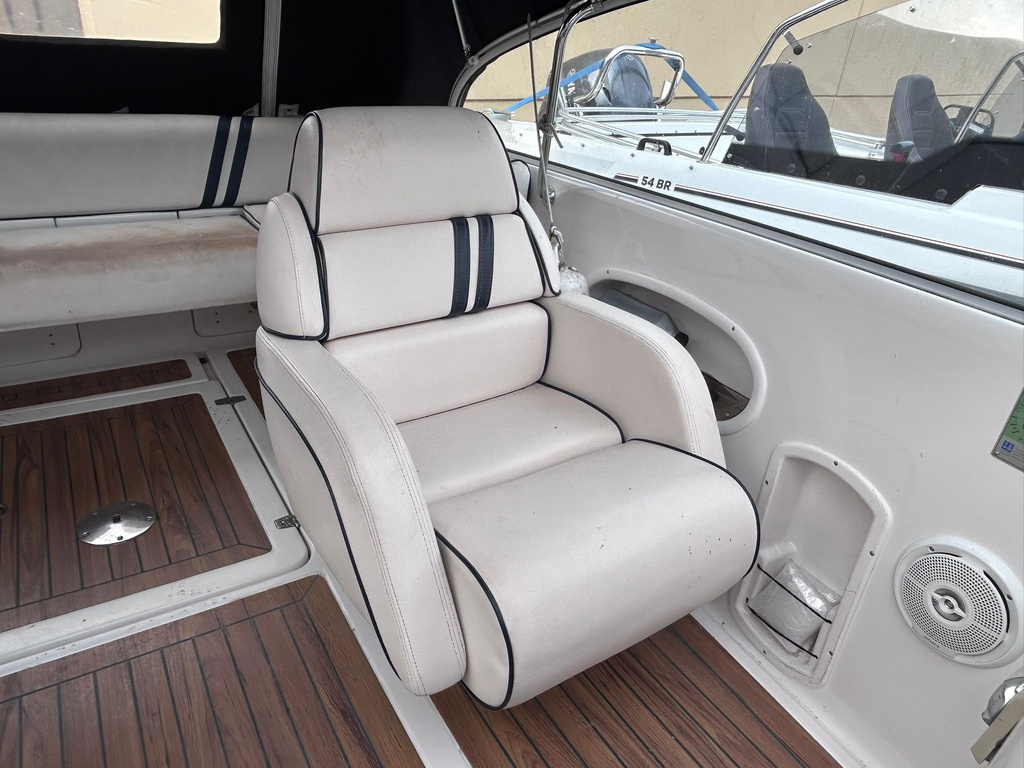 Moottorin evä on vaurioitunut, mutta se korjataan ennen myyntiä / ennen kuin vene luovutetaan uudelle omistajalle.