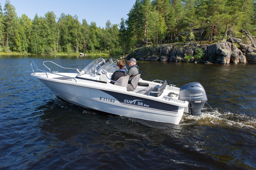 Mycket populär förbindelse- och fiskebåt med dubbelpulpet. Utmärkta köregenskaper. Bred modell med mycket god sidostabilitet. Båten är utrustad med väl skyddande vindrutor, rikligt med räcken, 2 st. låsbara stuvutrymmen. Rejält tilltagna stuvutrymmen för t.ex. kylväska eller kassar under styrpulpeterna. Rekommenderad motoreffekt max. 60 hk. Utrustad med regnläns. Nytt, tvådelat kapell för akterhytten finns att få som extrautrustning.